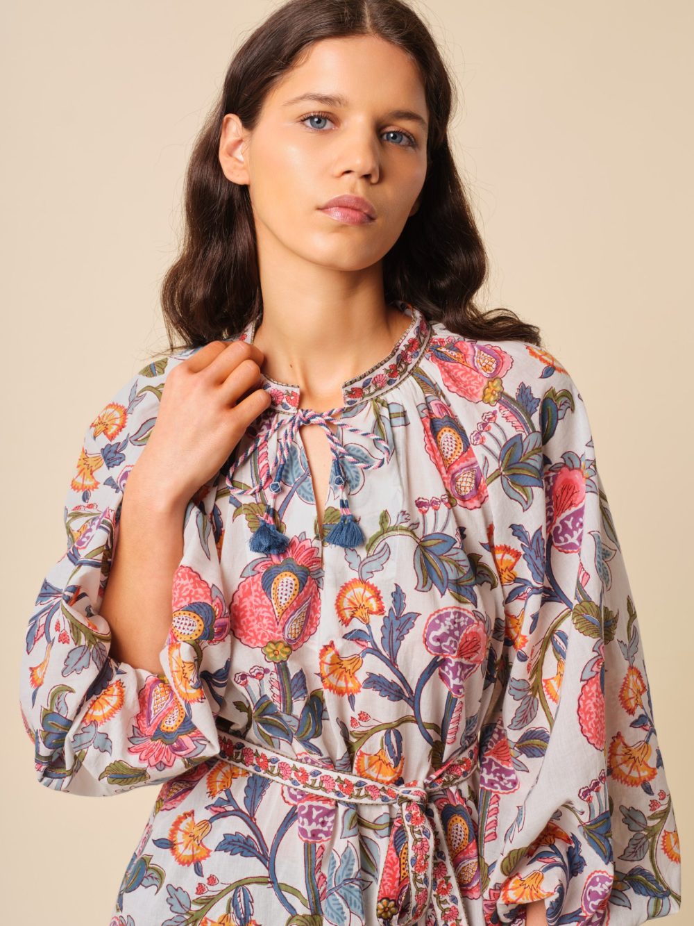 Blouse 100% coton imprimé à la main
