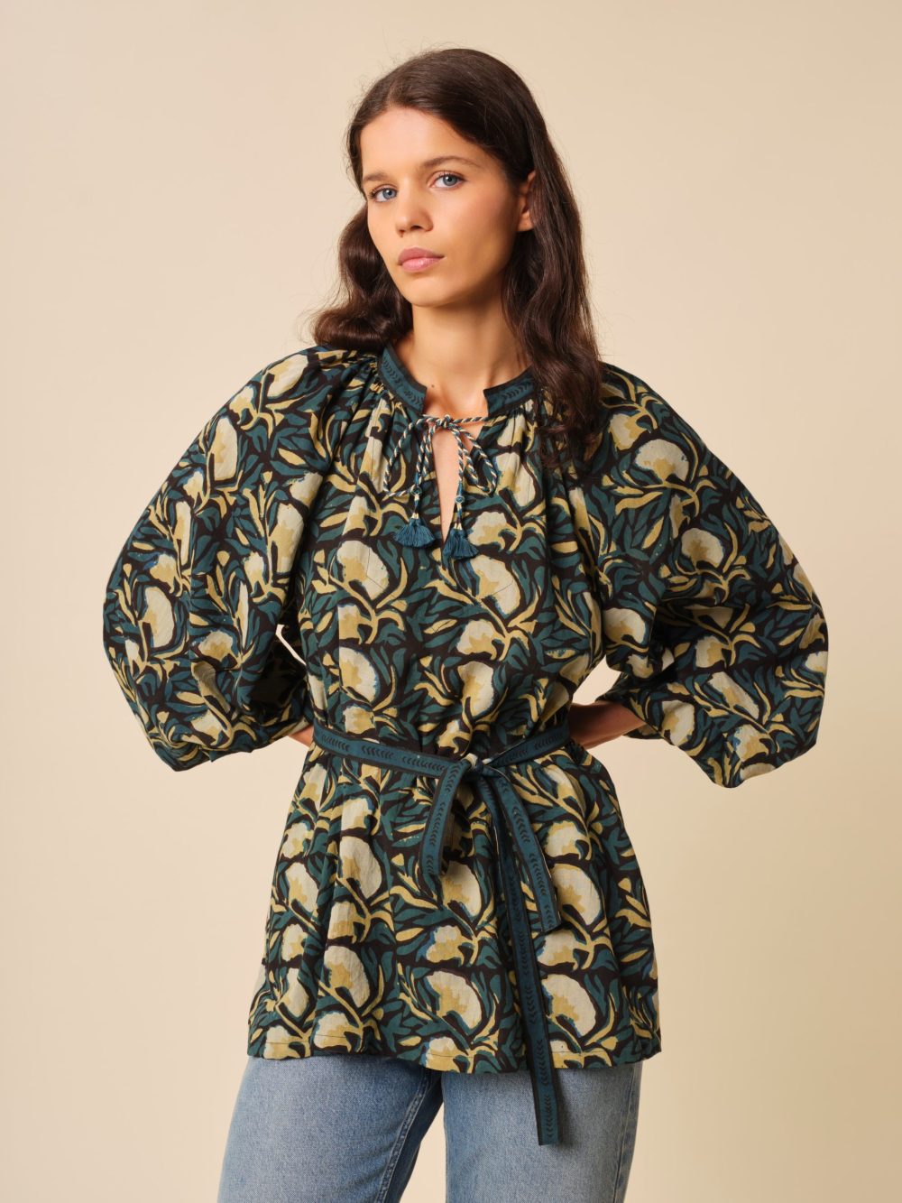Notre blouse Tillie incarne parfaitement l'esprit bohème avec son voile de coton léger et son imprimé fleuri délicat.