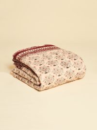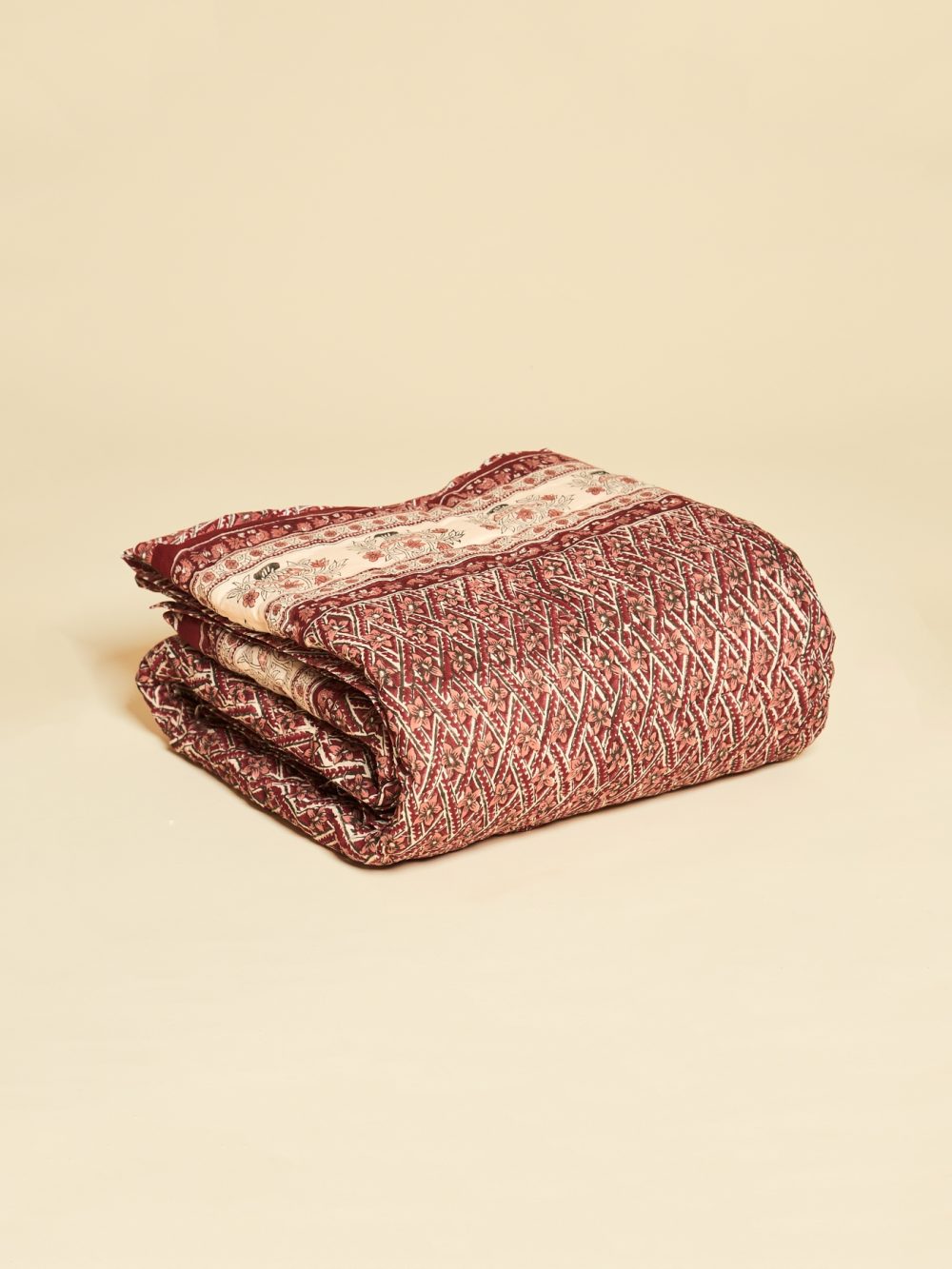 Réversible, il arbore deux motifs uniques imprimés à la main. Il est entièrement confectionné en coton : son tissu extérieur en voile de coton léger se marie parfaitement avec le rembourrage en ouate de coton pour une texture matelassée des plus agréables. Adapté à toutes les saisons, il conserve sa fraîcheur en été et vous réchauffe en hiver. Il peut servir de courtepointe, de plaid pour votre canapé ou même de tapis de jeux pour enfant.