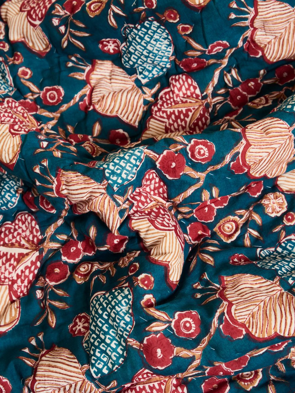 Réversible, les deux côtés sont imprimés à la main avec des motifs uniques et délicats. Disponible en trois tailles, notre couvre-lit convient parfaitement à tous les types de lits, du simple au grand lit double.