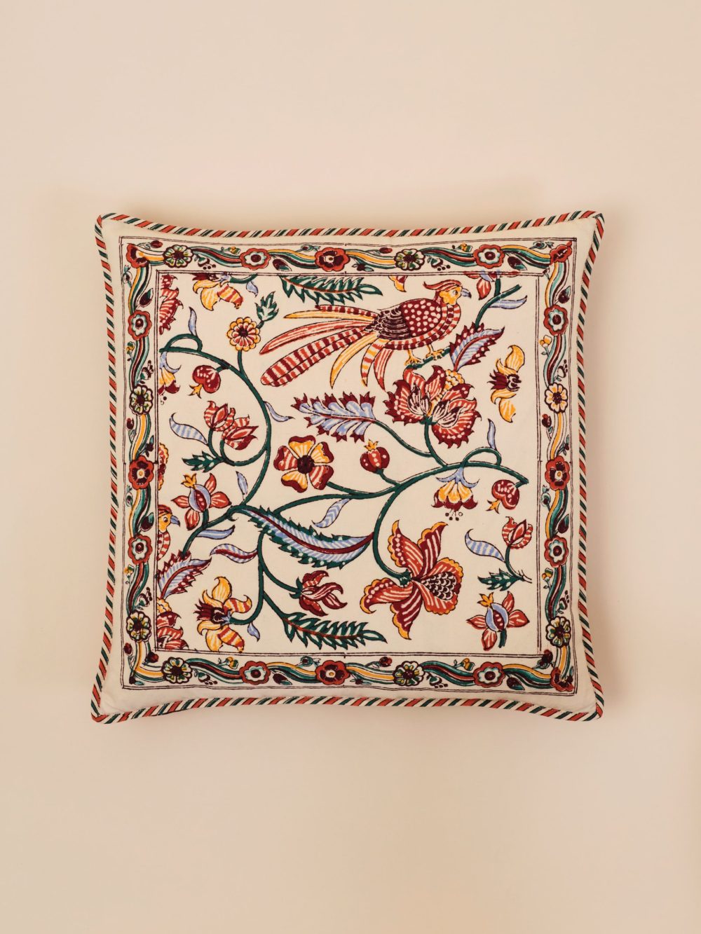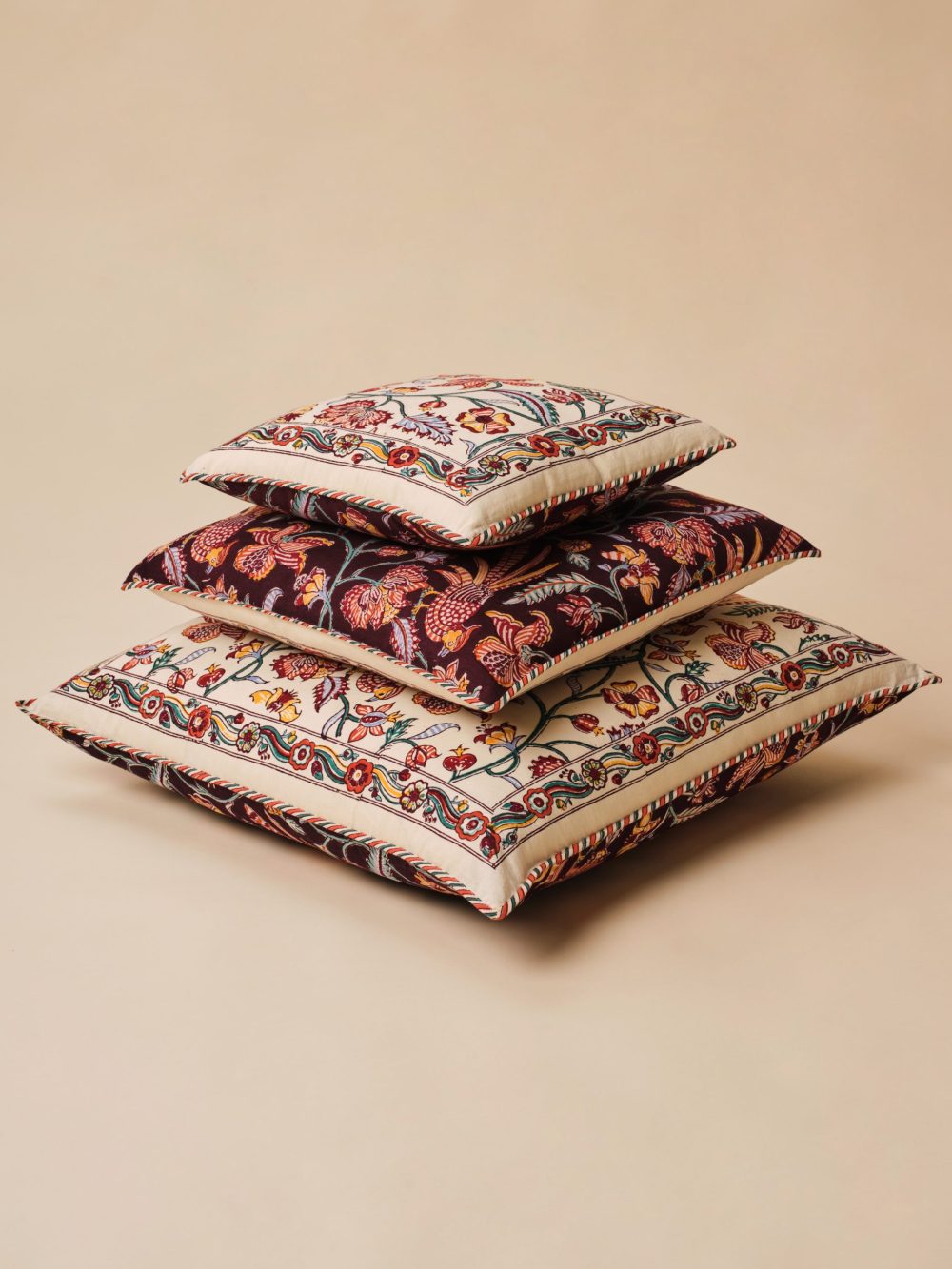 L'impression à la main au bloc de bois confère à cette housse sa splendeur distinctive et son caractère vivant. Elle évolue avec grâce au fil des lavages, conservant son charme tout en acquérant une patine subtile qui la rend encore plus précieuse avec le temps.