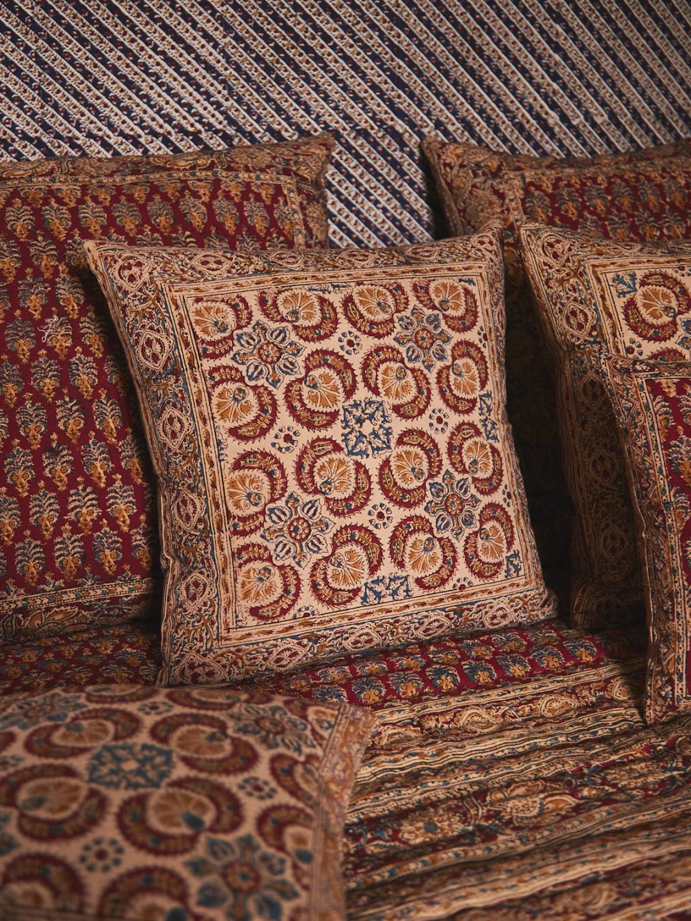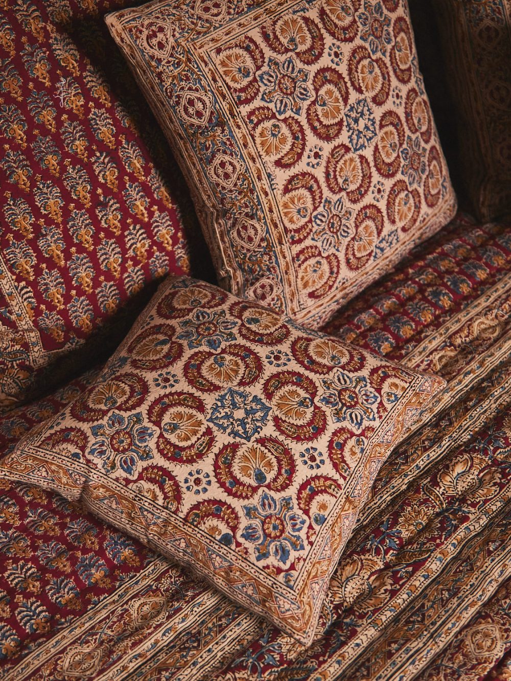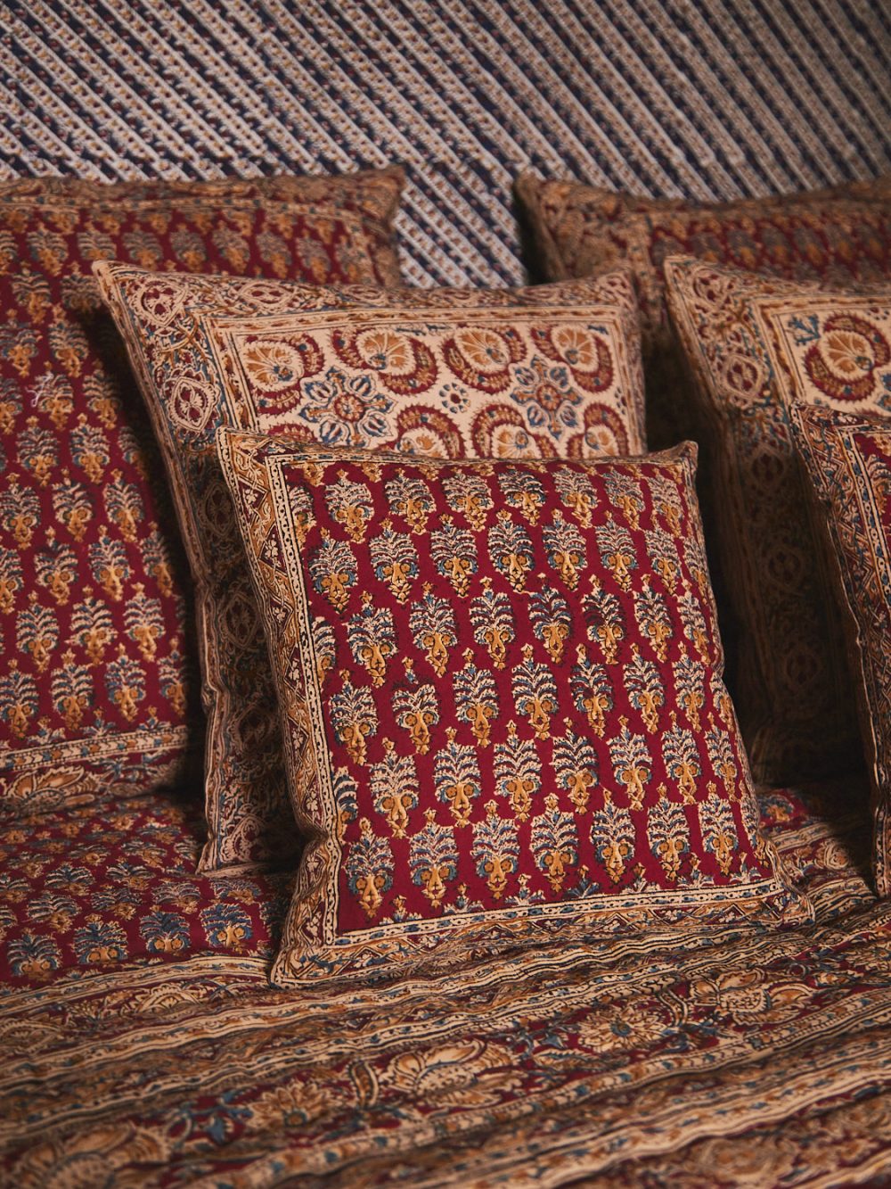 Notre housse de coussin Kalamkari est une fusion parfaite de tradition et d’élégance contemporaine.