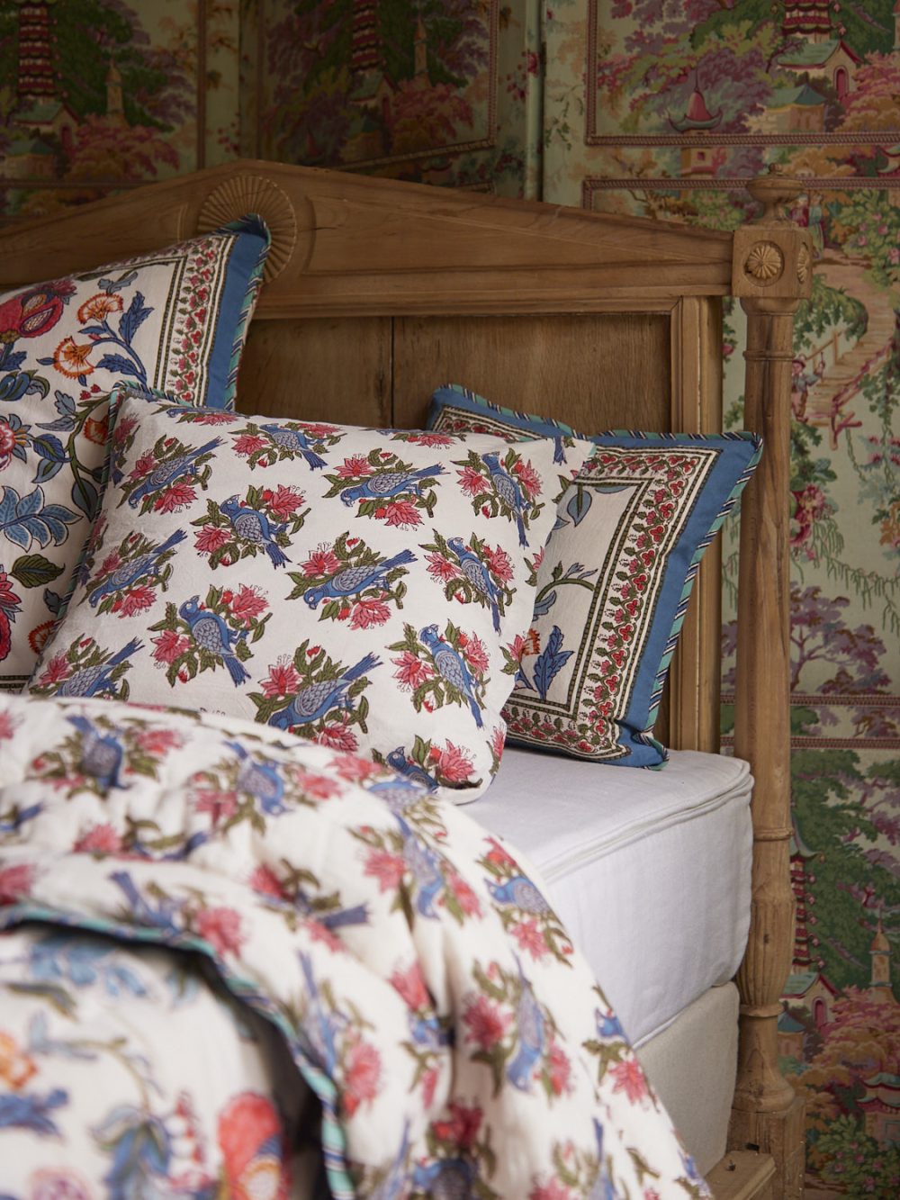 L'impression à la main au bloc de bois confère à cette housse sa splendeur distinctive et son caractère vivant. Elle évolue avec grâce au fil des lavages, conservant son charme tout en acquérant une patine subtile qui la rend encore plus précieuse avec le temps.