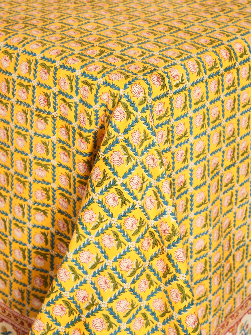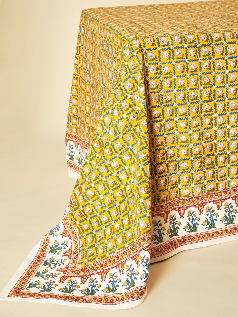 Notre nappe en coton est l'accessoire parfait pour apporter une touche d'originalité à votre intérieur. La technique d'impression manuelle au bloc de bois fait que chaque nappe est un travail d'art en soi. Chaque pièce est unique, avec ses propres variations de couleurs et de motifs, ce qui en fait un véritable objet de décoration.
