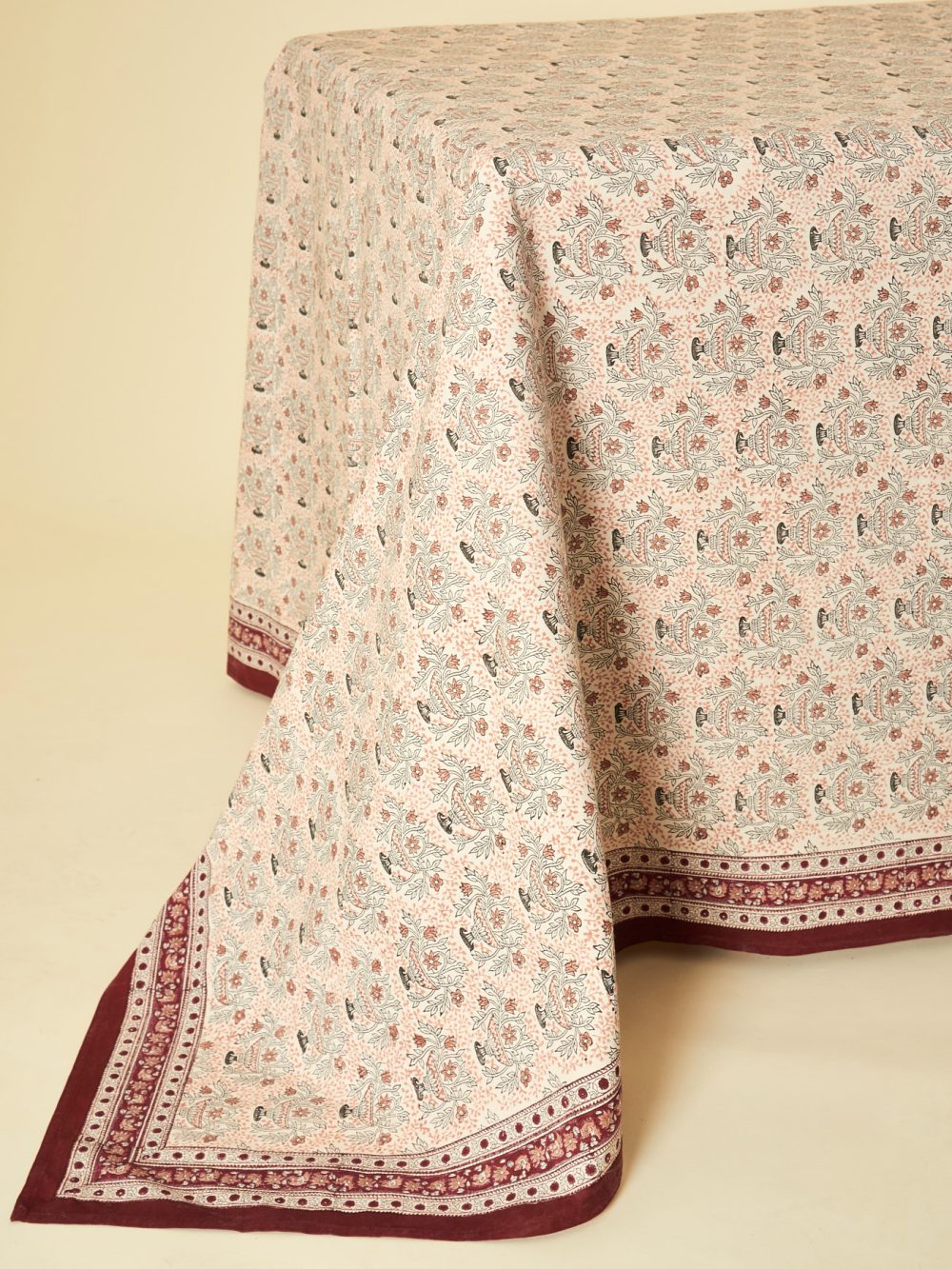 Notre nappe en coton est l'accessoire parfait pour apporter une touche d'originalité à votre intérieur. La technique d'impression manuelle au bloc de bois fait que chaque nappe est un travail d'art en soi. Chaque pièce est unique, avec ses propres variations de couleurs et de motifs, ce qui en fait un véritable objet de décoration.