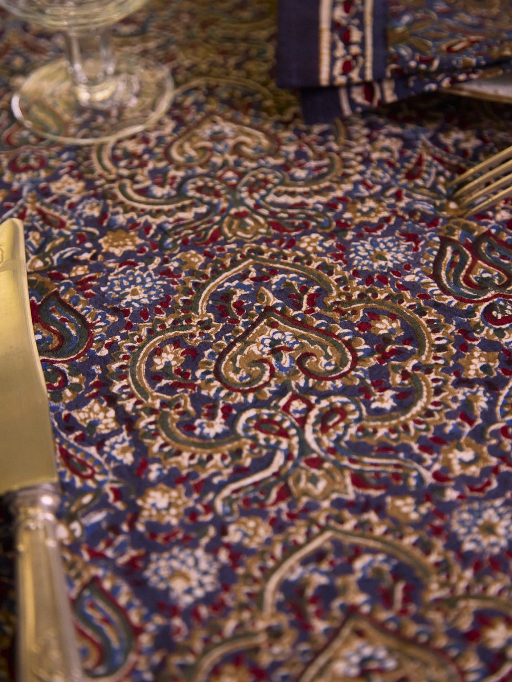 Notre nappe en coton est l'accessoire parfait pour apporter une touche d'originalité à votre intérieur. La technique d'impression manuelle au bloc de bois fait que chaque nappe est un travail d'art en soi. Chaque pièce est unique, avec ses propres variations de couleurs et de motifs, ce qui en fait un véritable objet de décoration.
