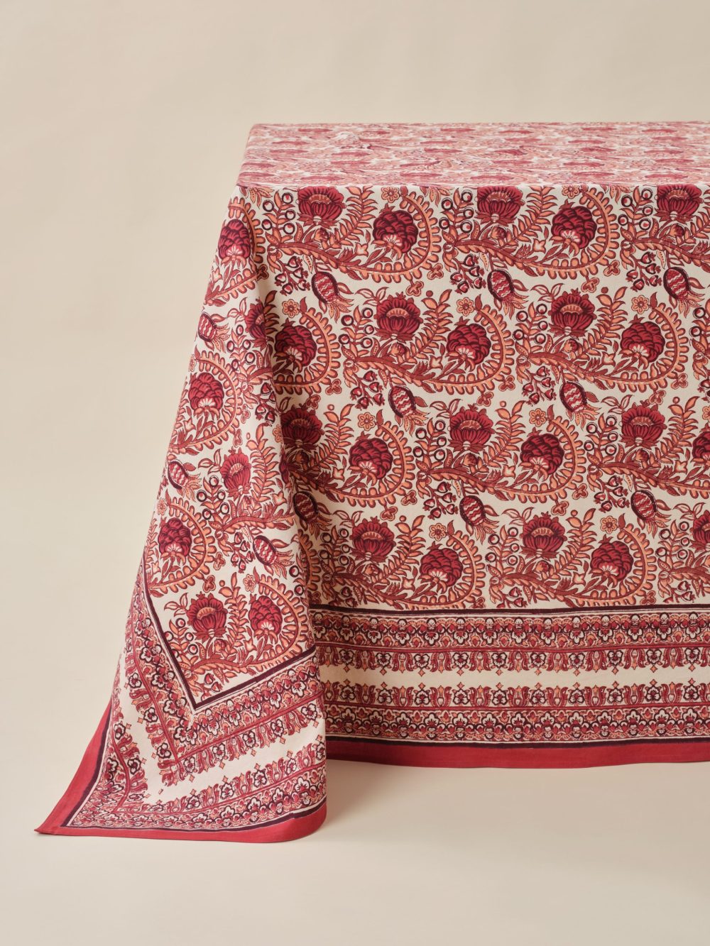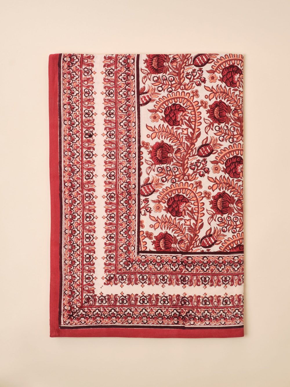 Notre nappe en coton est l'accessoire parfait pour apporter une touche d'originalité à votre intérieur. La technique d'impression manuelle au bloc de bois fait que chaque nappe est un travail d'art en soi. Chaque pièce est unique, avec ses propres variations de couleurs et de motifs, ce qui en fait un véritable objet de décoration.