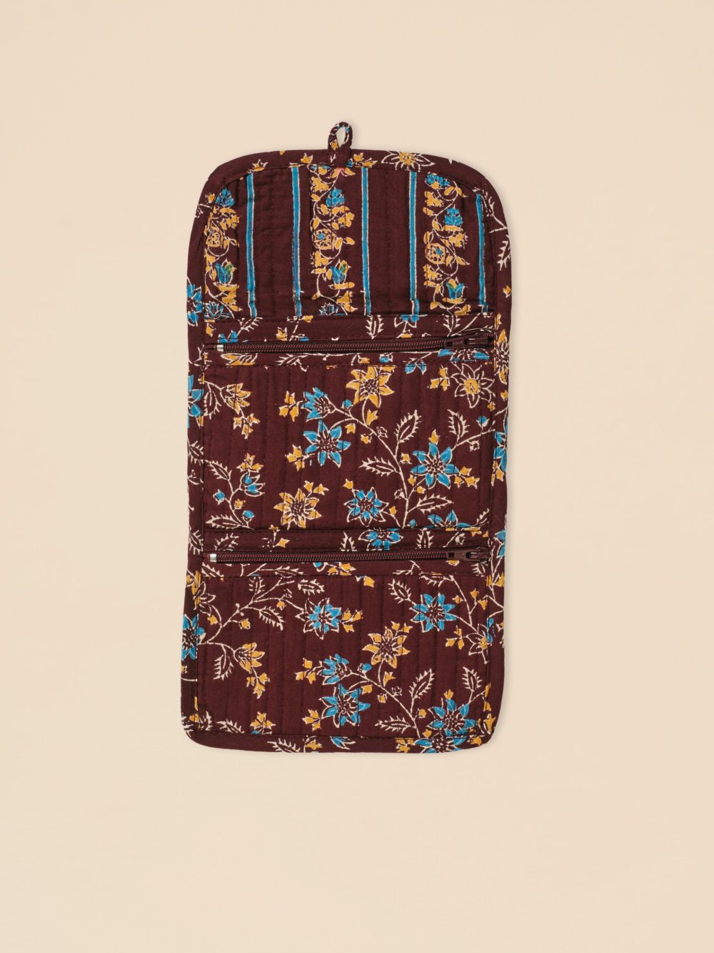 Notre portefeuille est en coton matelassé imprimé à la main.