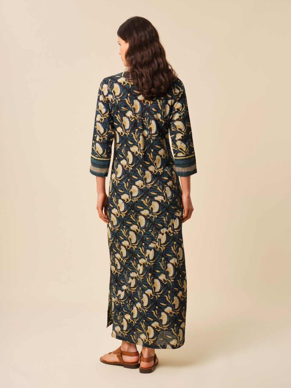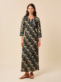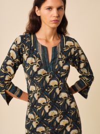 Notre robe kurta est réalisée en voile de coton léger et est soigneusement imprimée à la main afin d’obtenir un motif des plus délicats qui sera totalement unique.