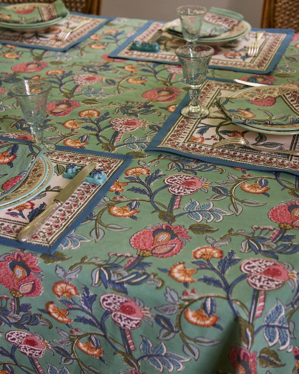 Explorez l'élégance de l'artisanat indien à travers nos sets de table en coton soigneusement imprimés à la main.