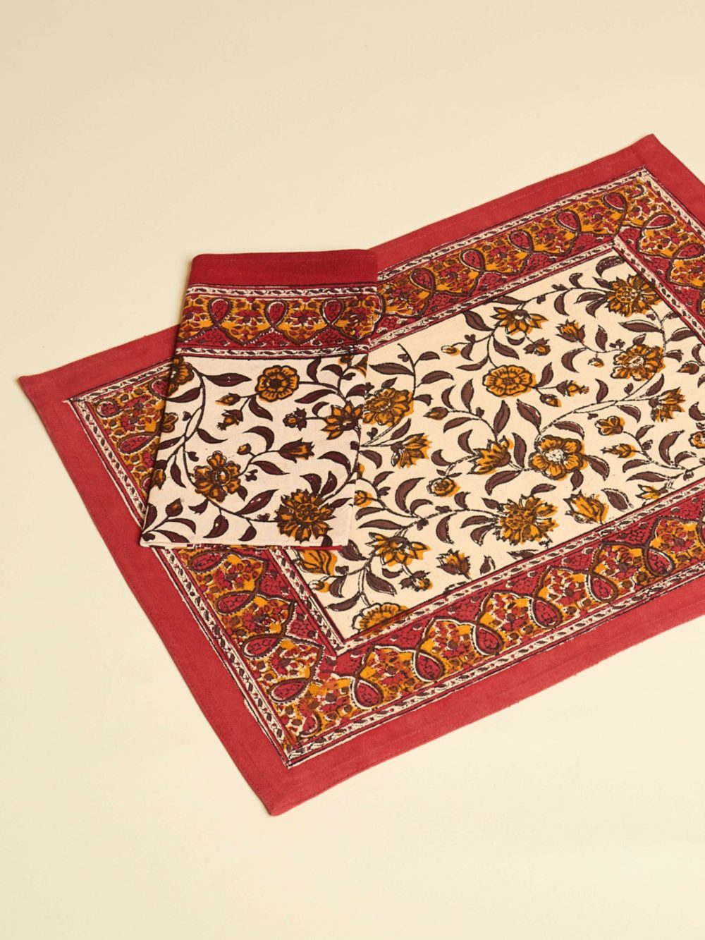 Explorez l'élégance de l'artisanat indien à travers nos sets de table en coton soigneusement imprimés à la main.