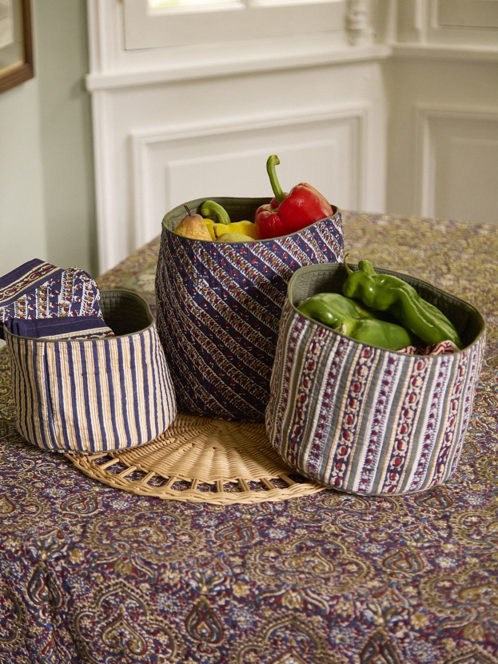 Notre ensemble de trois paniers matelassés offre une manière charmante d'embellir votre décor.