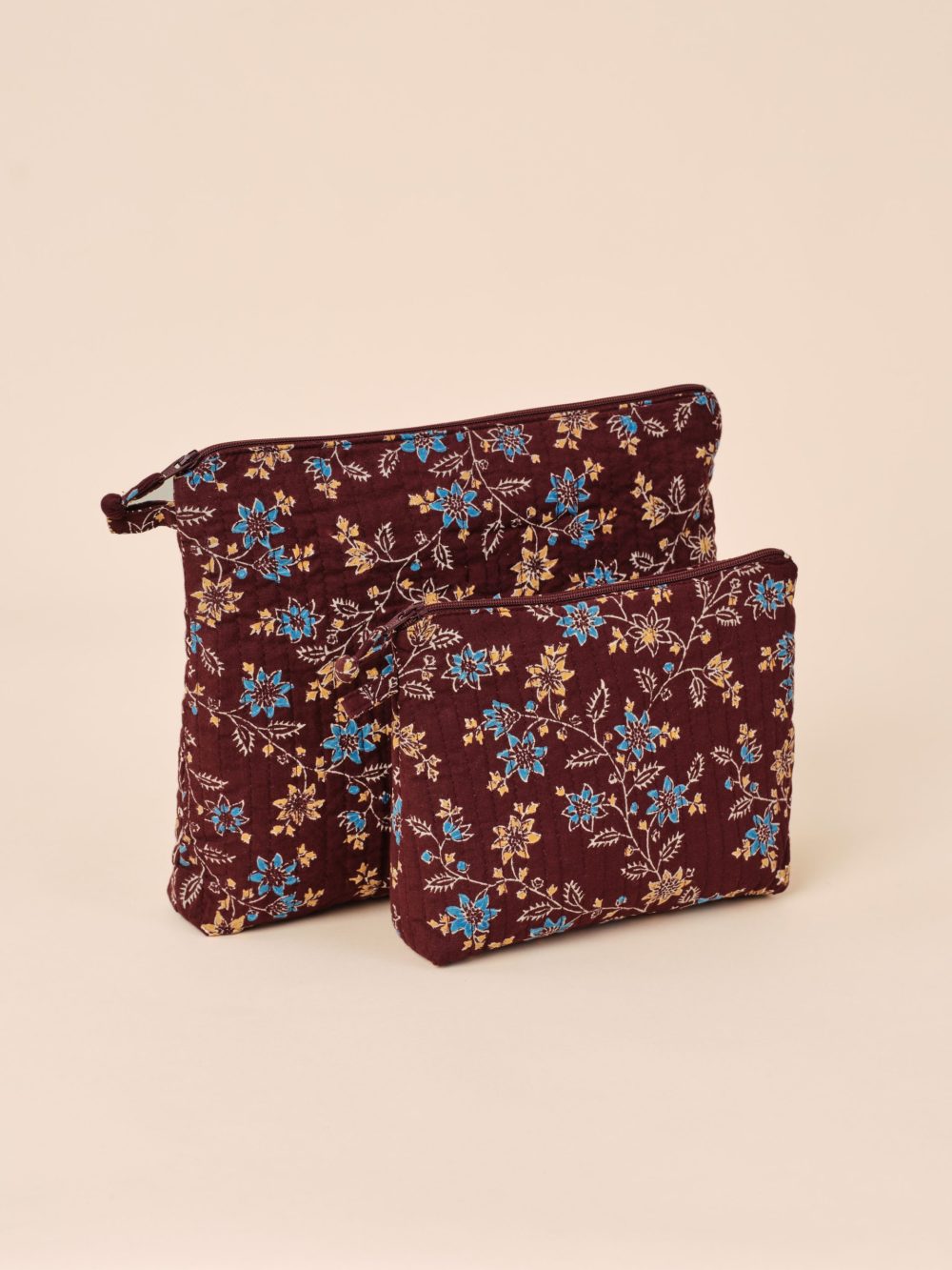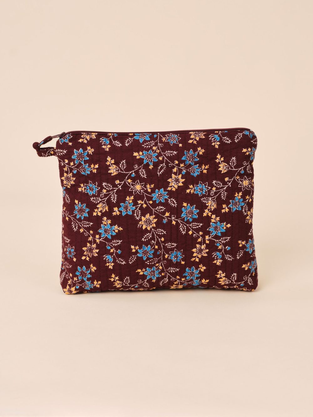 Trousse en coton matelassé imprimé à la main