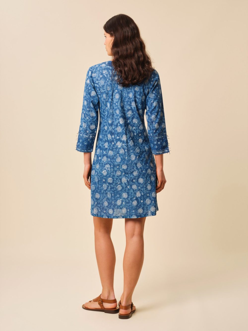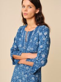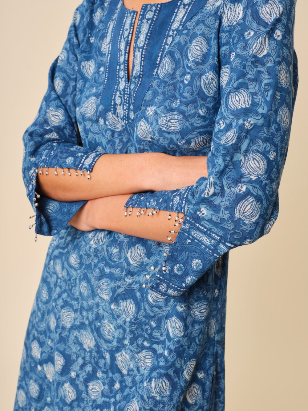 Our kurta is made from lightweight cotton voile and carefully hand-printed to create a delicate pattern that is totally unique.