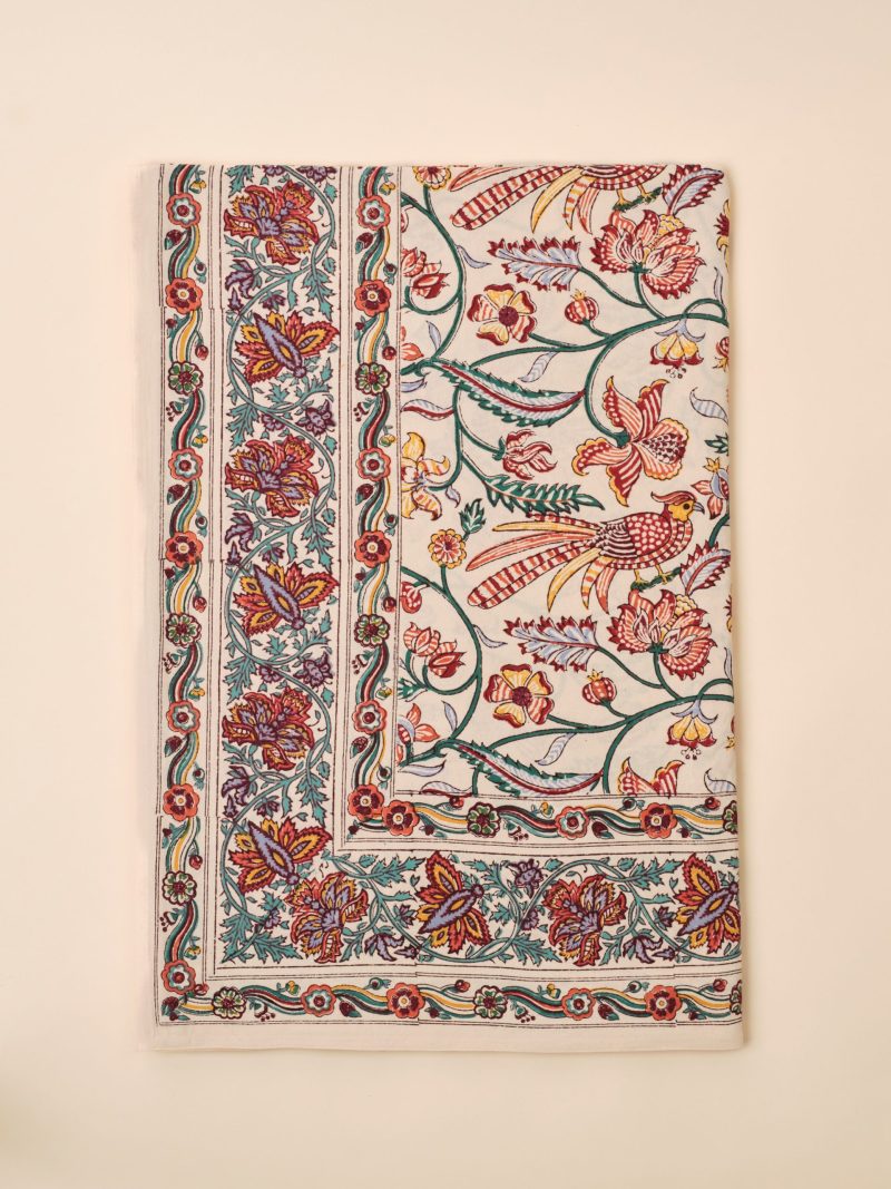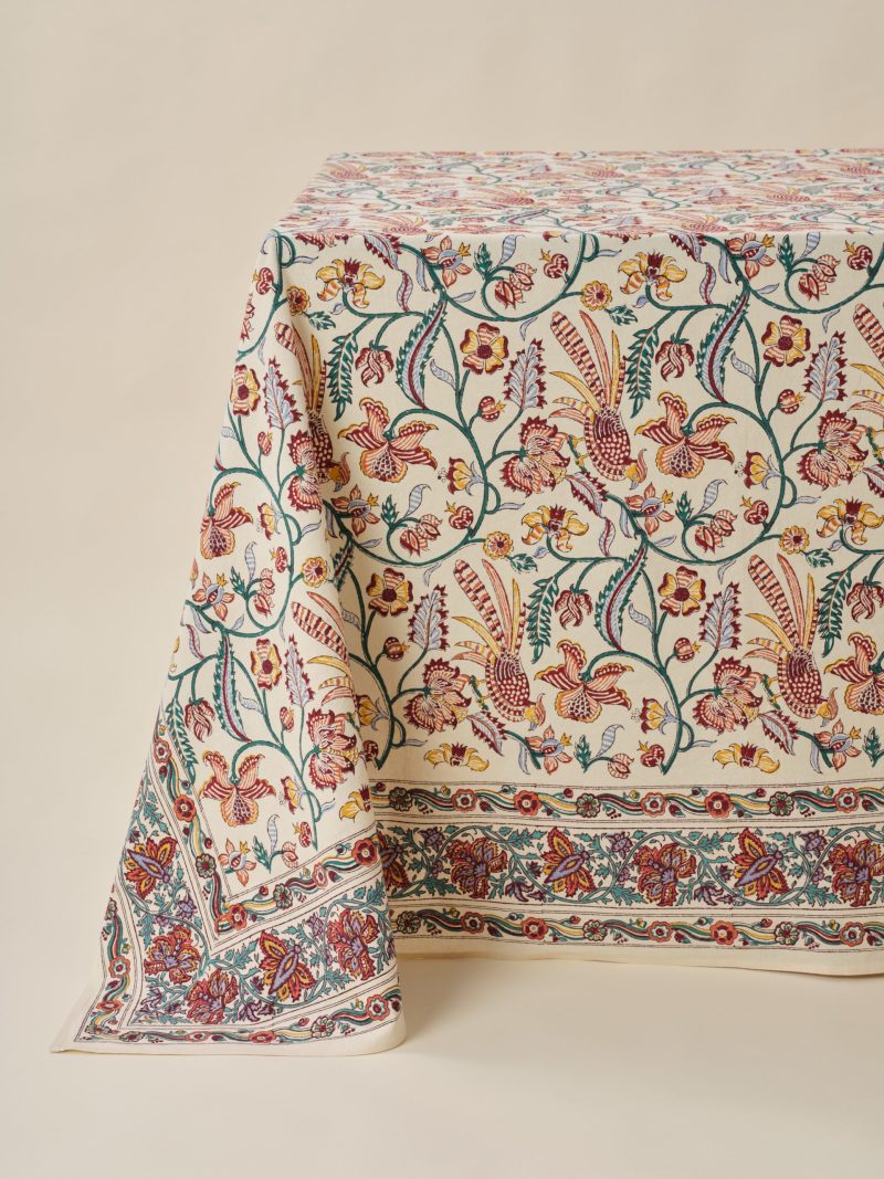 Our Kalamkari tablecloth in natural dye is the perfect accessory to bring a touch of originality to your home. The woodblock printing technique makes each tablecloth a work of art in itself. Each piece is unique, with its own variations in colour and pattern, making it a true decorative object.