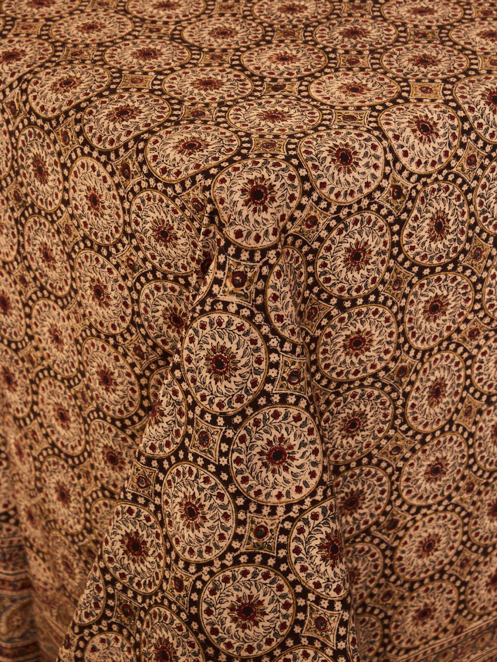 Our Kalamkari tablecloth in natural dye is the perfect accessory to bring a touch of originality to your home. The woodblock printing technique makes each tablecloth a work of art in itself. Each piece is unique, with its own variations in colour and pattern, making it a true decorative object.