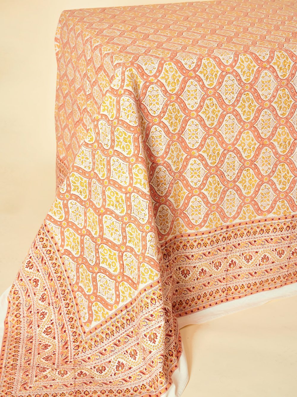 Our cotton tablecloth is the perfect accessory to bring a touch of originality to your home. The woodblock printing technique makes each tablecloth a work of art in itself. Each piece is unique, with its own variations in colour and pattern, making it a true decorative object.